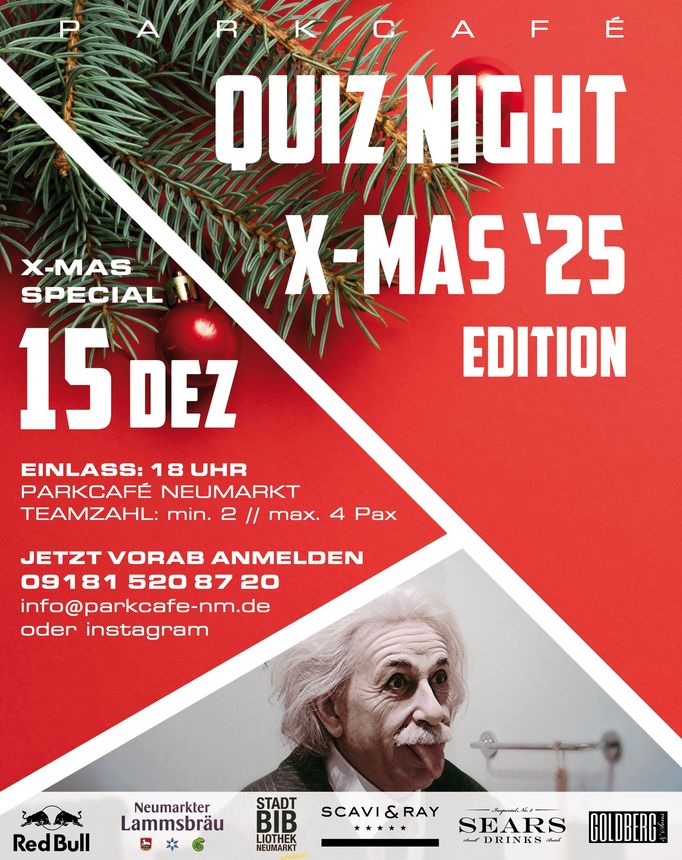 Am 17. November 2025 findet unsere 10. Quiz Night im Parkcafé Neumarkt statt. Insgesamt werden 32 Fragen zu 5 Kategorien gestellt.